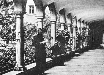 "A part of his time he gave to meditation on the various phases and secrets of life, at one corner of the garden under the olive trees". The "Pazmaveb" 1924 April. p. 143 |