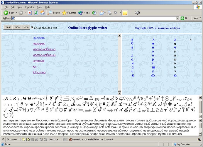 Рис. 1. ”Армянский Иероглифический редактор”