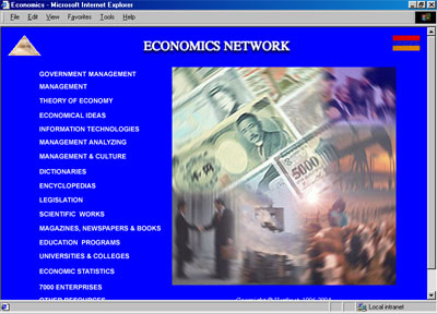 Что дают интернет ресурсы для экономистов? Во-первых, интернет является неисчерпаемым хранилищем ресурсов на различных языках по экономическим наукам, которые постоянно обновляются. Системы поиска информации облегчают задачу получения необходимой информации, статистических данных, рефератов , статей, монографий, тестов, моделирующих программ. Интернет экономика и образование становятся эффективным средством приобретения новых знаний. В сети можно найти электронные версии ведущих экономических журналов и газет, он-лайн бюллетени и библиотеки. Имеется множество периодических изданий, существующих только в электронной форме и их число постоянно увеличивается. Знакомясь в интернете с новостями в сфере экономики и образования, можно узнать, как оценивают эти новости ведущие эксперты, ученые - экономисты. С помощью подписки на электронные листы рассылки специалисты получают информацию о научных конференциях и семинарах, а также знакомятся с соответствующими материалами, публикуют научные статьи и учебно-методические разработки. Обмен информацией и публикации результатов исследований создают возможность совместных научных исследований экономистов практиков и ученых, имеющих общие интересы, независимо от того, в какой стране расположены научные и учебные организации, в которых они работают. Ответ на возникшие вопросы можно найти в электронных дискуссиях в Usenet (Newsgroups). Можно обратиться с вопросами к ведущим экономистам мира, заполнив и отправив по e-mail формы, хранящиеся на Web-страницах Ask Experts (спроси эксперта). В интернете можно найти объявления о вакансиях в сфере высшего образования зарубежом, а также страницы, посвященные предоставлению грантов, стипендий и т.п. Создание Web-страницы высшего учебного заведения - мощное средство рекламы. Ниже приводятся некоторые интернет адреса: международные, российские и армянские ресурсы для экономистов.