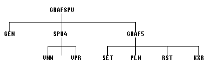 ГРАФСПУ состоит из следующих модулей: GRAFSPU. BAS, OB. BAS, GEN. BAS, SPU4. BAS, GRAFS. BAS, VPR. BAS, VNM. BAS, SET. BAS, RST. BAS, PLN. BAS, KXR. BAS. В процессе работы с системой производится запись данных на винчестер или дискету в БД под файлами с именами TIP, XAR, PAR, NAM, MPR, и MPR1.