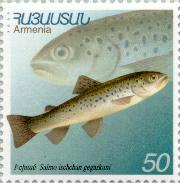 Salmo Ischchan gegarkuni is endemic to Lake Sevan. It is a medium sized fish with silver scales, big black, sometimes orange or light pink spots. Ischchan has 4 biotypes: S.i. ischchan, S.i. gegarkuni, S.i. anilewski, S.i. aestivalis. The gegarkuni has a sharp chin and fusiform body. By length reaches 40cm, weight 400-600gram.