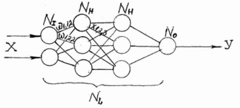 Обозначим количество слоёв и нейронов в слое. Входной слой NI нейронов; NH нейронов в каждом скрытом слое; No выходных нейронов. Х – вектор входных сигналов, Y – вектор входных сигналов.
