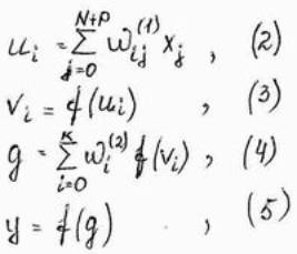 Допостим, что все нейроны имеют сигмаидальную функцию активации. Обозначим ui взвешенную сумму сигналов i – го нейрона скрытого слоя, а g – взвешенную сумму сигналов входного нейрона. Тогда мы получим: