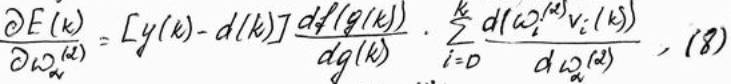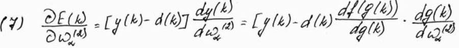 Дифференцируя эту функцию относительно произвольного веса wa(2) (a = 0,1, …, k) выходного слоя сети, получем: