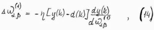 4. Актуализировать веса в соответствии с формулами (12) и (14), после чего вернуться в п.2 настоящего алгоритма.