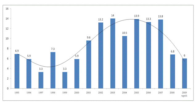 Диаграмма 6. Траектория роста ВВП Армении по данным Статкомитета СНГ (1995-2009гг.)
