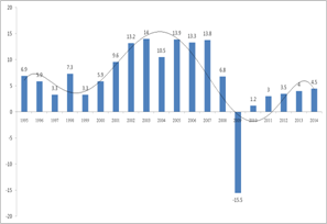 значения 6.96. В 2008г. вырос с