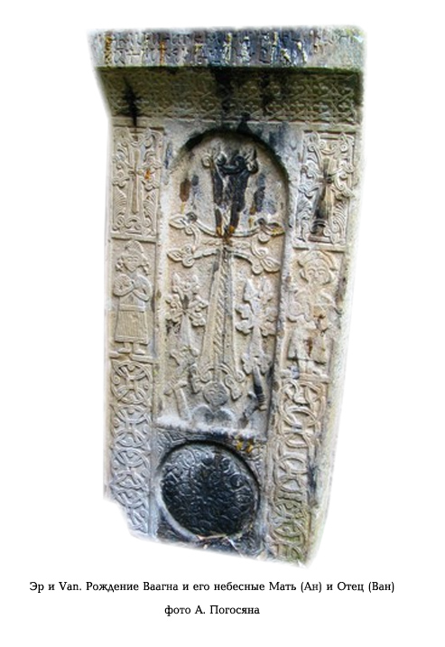 Слово "ванк" (букв. храм или слог) может быть разложено на три части "ван" "ан" и "к" (от "кар" - камень, ср. Ай и Айк). Ванк может быть интерпретировано как угловой камень ("анкюнакар"), ср. "анкюн" (букв. угол, ср. "анг(к)х" - египетский тип креста). Ванк, на наш взгляд, это храм, построенный Ваагном в честь Вана. Аналогично это относится к слогу (ванк) – как языковому, речевому выражению идей, мыслей, историй, учения Отца.