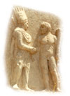 Рис. 3. Артефакты у святилища Ваагна. Рукопожатие царя с вождем диких племен свидетельствует об установлении мира.  На головном уборе царя изображение льва
