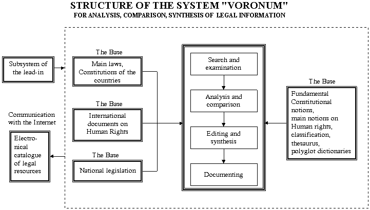 The considerable increase of the volume of legal information has led to that the search of a necessary document, act, norm has become to represent a real problem. Traditional technology, even the best and most elaborate system of cross-reference between documents often fails to provide the user with the required information within a reasonable timespan, and more, but also to compare it with the same information met in the legislation of other countries of the world. To dissolve this problem, has been cultivated the system "VORONUM".